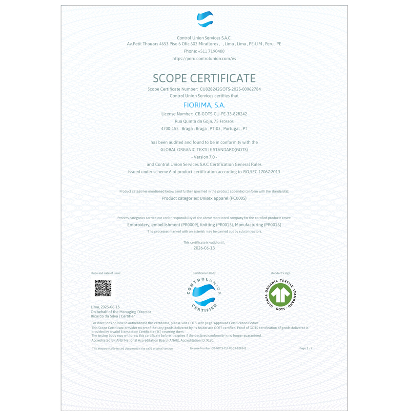 O GOTS (Global Organic Textile Standard) é uma norma internacional que assegura o estatuto orgânico dos têxteis desde a colheita das matérias até à rotulagem através de uma produção ambiental e socialmente responsável, a fim de fornecer garantias credíveis ao consumidor. A norma abrange o processamento, fabricação, embalagem, rotulagem e a comercialização e distribuição de todos os têxteis feitos com pelo menos 70 por cento de fibras naturais orgânicas certificadas.